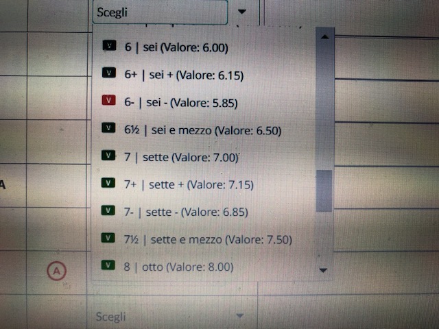 1. Effettivamente è un sistema valutativo ridicolo. Io ho eliminato il problema passando ad es dal 6½ al 7 direttamente. Non tengo in considerazione voti come 7‐ o 6+. Ma lo faccio proprio per evitare la domanda giusta e pertinente dello studente. Il problema sta a monte.