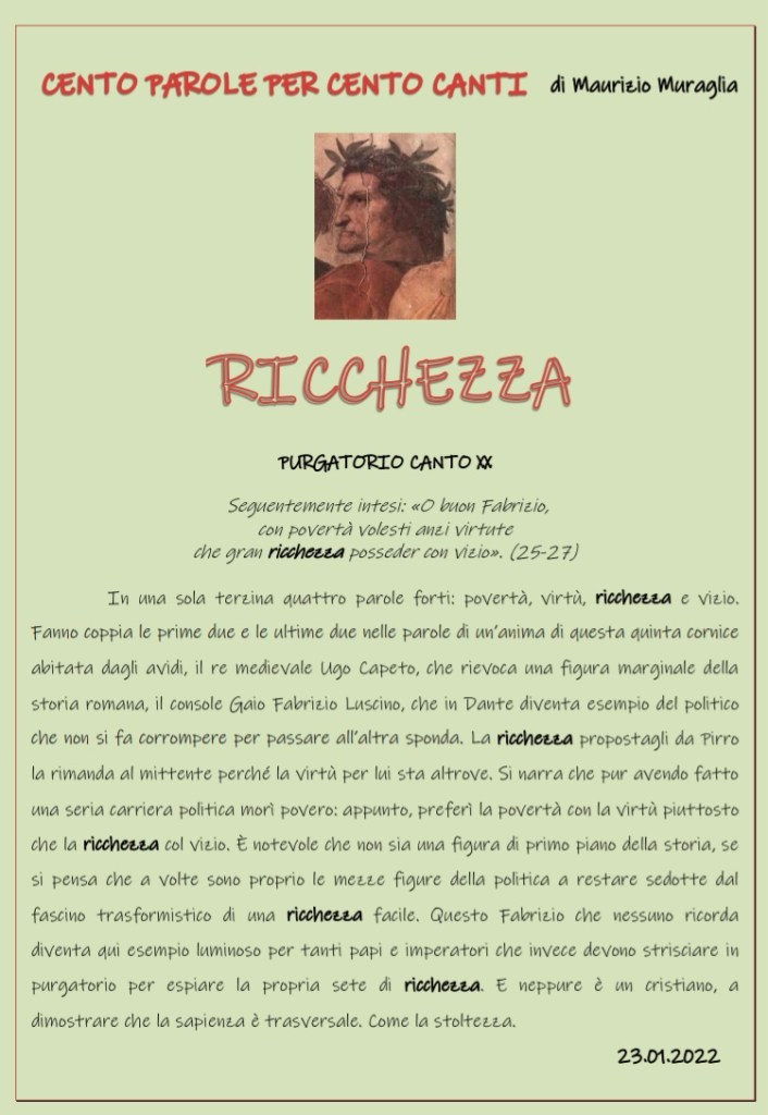 Purgatorio canto XX: RICCHEZZA