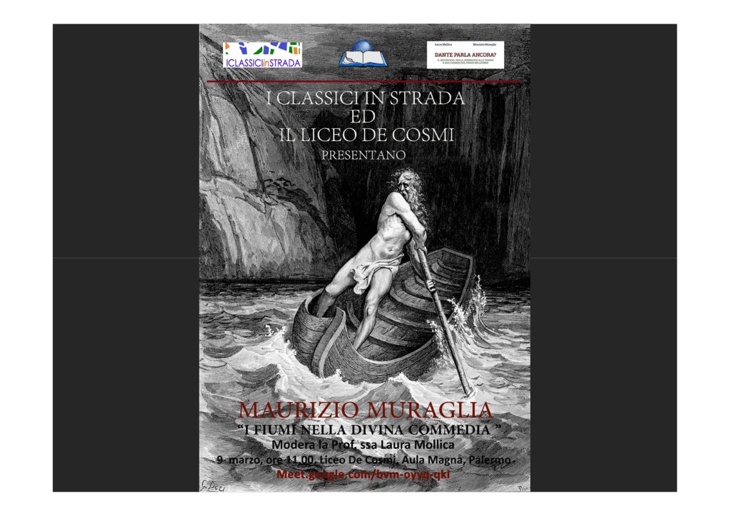Lo scorso 9 marzo, nell’aula magna del Liceo “De Cosmi” di Palermo, nell’ambito dell’iniziativa “Classici in strada” che coinvolge una rete di scuole, ho incontrato gli studenti di quella scuola in presenza, ma anche gli studenti della rete in remoto, per affrontare il tema dei fiumi nella Divina Commedia col prezioso supporto iconografico della collega Laura Mollica, moderatrice dell’evento e coautrice con me del testo “Dante parla ancora?” edito nel 2021 da Di Girolamo. Riassumo qui il contributo offerto alle ragazze e ai ragazzi di quella scuola.