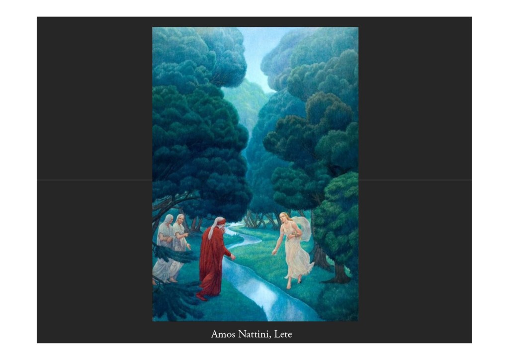 I fiumi del Purgatorio sono necessari per restituire a Dante la piena umanità, tant’è vero che dopo l’immersione, quasi battesimale, nel Lete, Dante è consegnato a quattro fanciulle danzanti che rappresentano le quattro virtù cardinali, ovvero il requisito della piena umanità.