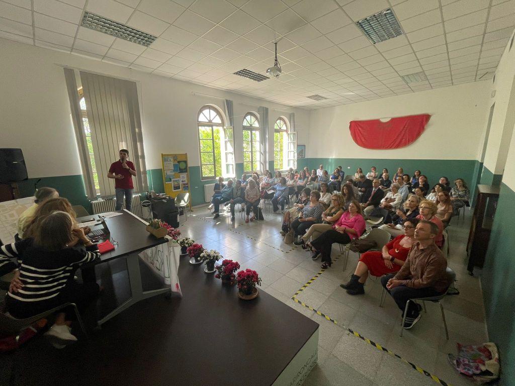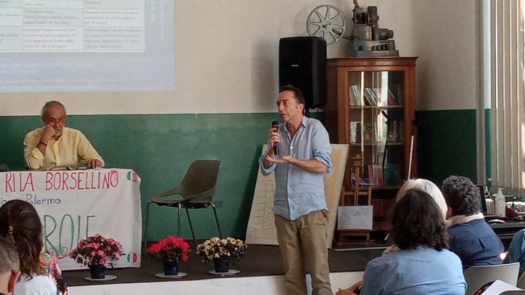 Ma non c’è bisogno di questo in giro. Il CIDI continua imperterrito, ogni anno, con quella cinquantina di irriducibili che alzano la testa dalla trincea delle scartoffie da dichiarare e delle piattaforme da caricare, dove da discutere c’è ben poco se non nulla. In queste foto la traccia di quel che si è fatto venerdì 24 maggio a Palermo presso l’Istituto comprensivo “Rita Borsellino” di piazza Magione. Prima del racconto delle esperienze si è parlato di valutazione. Io che qui scrivo, Mariarosa Turrisi e Luigi Menna, insieme a Daniela Sortino, abbiamo fatto un ragionamento che ai presenti è piaciuto. Ma è piaciuto perché abbiamo cercato di mettere ossigeno nell’asfissia delle circolari ministeriali sul voto di condotta, delle medie dei voti, dei mezzi e quarti di voto, nel recinto mefitico di Argo, cioè il digitale che ci guida come cani (appunto, Argo) al guinzaglio nel misurare il Vivente.