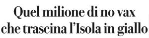 Discriminati e vessati. Equiparateci a tutti gli altri. Perché noi senza stipendio e gli altri no? Buuuu…si arrabbiano perché il terreno frana. I docenti no vax vogliono che si colpiscano anche gli altri lavoratori no vax. Cioè: se io imbratto i muri di casa papà ha il diritto di punirmi solo se punisce anche i miei fratelli. Bene. Papà punisce tutti. E ci sta. Fosse per me, obbligo vaccinale per tutti senza se e senza ma. Ma…. in attesa che papà punisca auspicabilmente tutti, che sse fa? Si continua a cialtroneggiare? A scrivere petizioni? A blaterare balle? Proposta per la cialtroneria intellettuale sicula: fuori dalle classi, stipendio mantenuto ed un giro quotidiano nelle terapie intensive degli ospedali di Palermo. Un bagno di realtà. E, forse, di umanità.